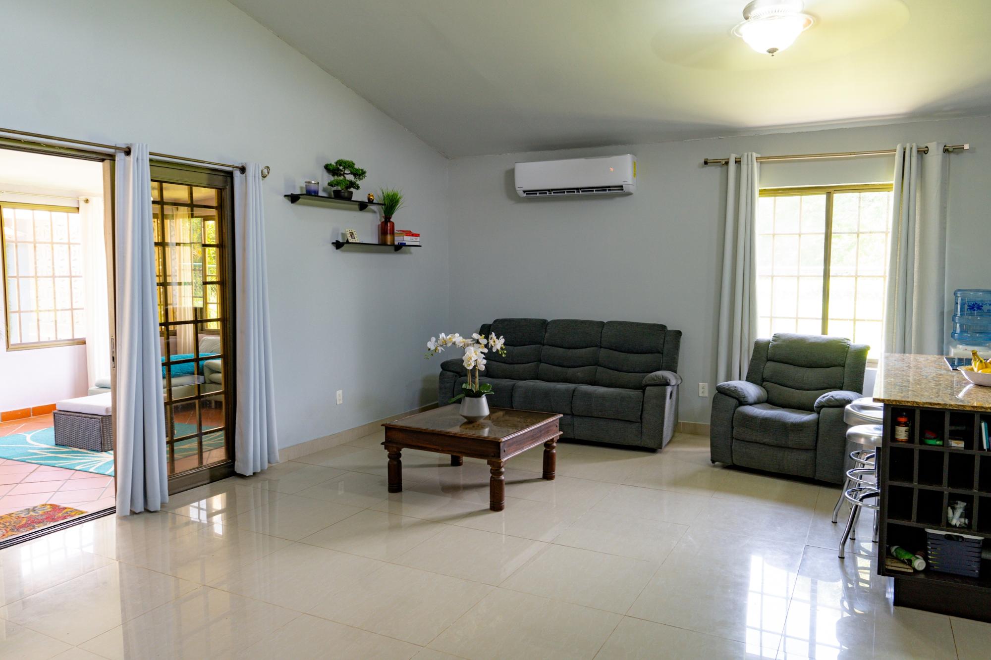 Esta excepcional propiedad en la exclusiva zona de Chame ofrece una combinación ideal de lujo y potencial de inversión. Situada en un generoso terreno de 3,400 metros cuadrados, la casa principal cuenta con dos amplios dormitorios y dos baños. La cocina de concepto abierto se conecta perfectamente con una gran sala de estar, que se abre a una terraza cubierta con vista a la espectacular piscina, perfecta para relajarse y entretenerse. Piscina de agua salada de bajo mantenimiento y cocina exterior. El patio cubierto es una oficina o comedor. 1,5 garaje completo. La propiedad también cuenta con dos cabañas estilo estudio, cada una con acceso directo a la piscina, baño privado y cocina. Estas cabañas son perfectas para alquileres, Airbnb o alojamiento para huéspedes, brindando una excelente oportunidad para generar ingresos. Rodeada de hermosos jardines, la propiedad ofrece amplio estacionamiento y mucho espacio para futuras construcciones. Ubicado a sólo 10 minutos de Coronado, está convenientemente cerca de mercados y restaurantes, lo que garantiza un fácil acceso a todos los servicios esenciales y al mismo tiempo mantiene un entorno tranquilo y privado. Esta propiedad única es perfecta para quienes buscan disfrutar de un estilo de vida sereno con oportunidades de ingresos adicionales. Aparcamiento para 10 coches.