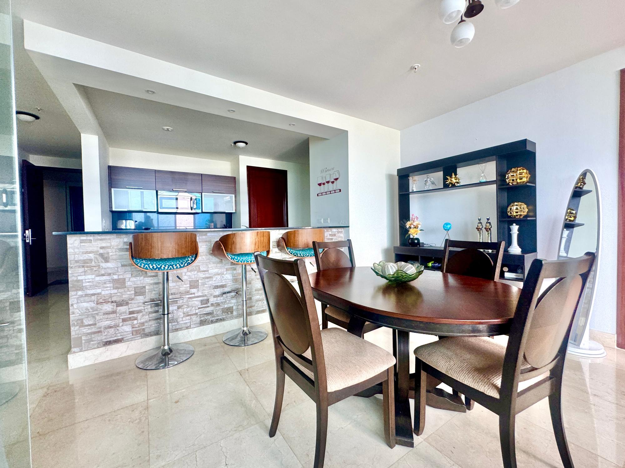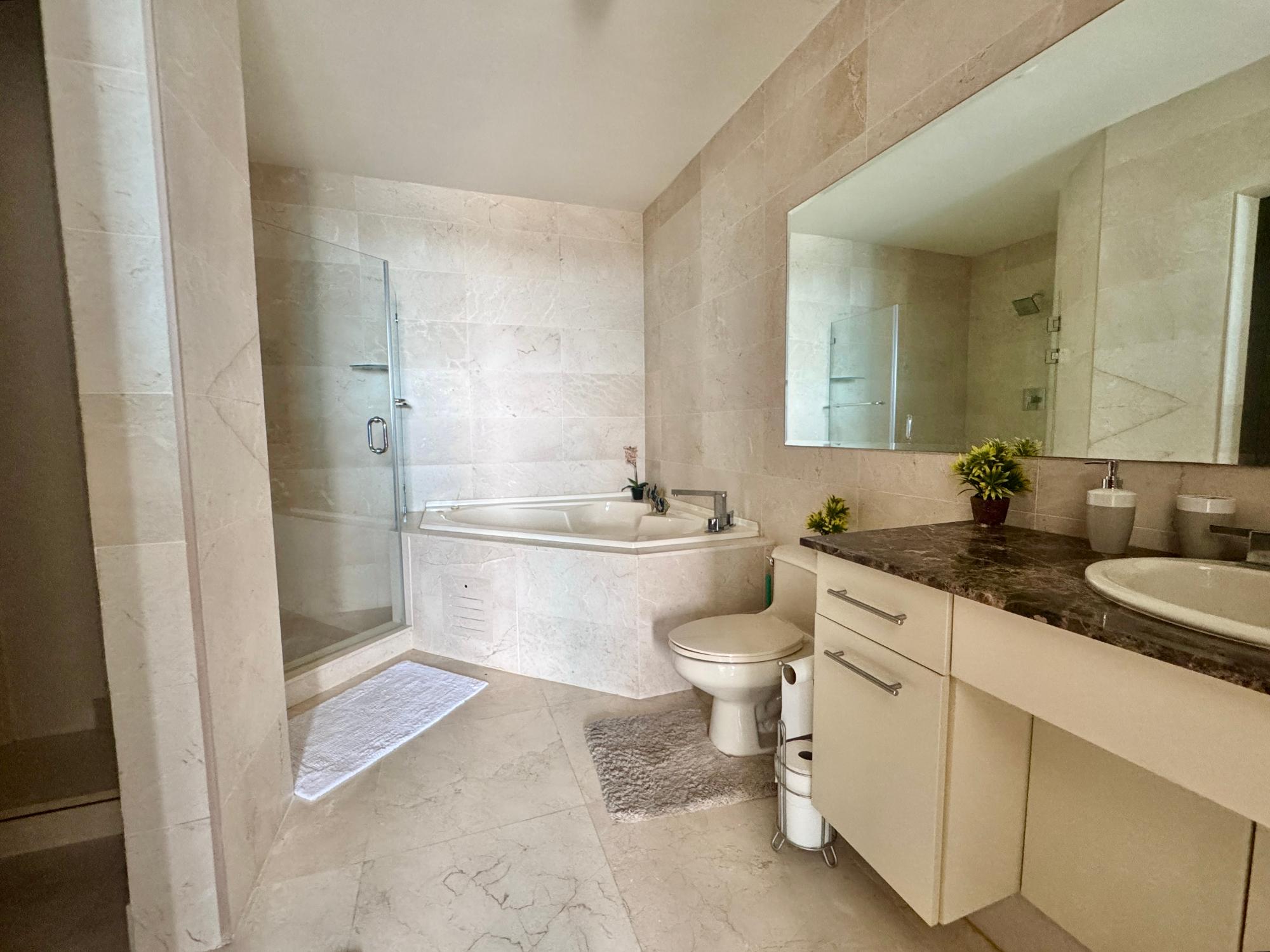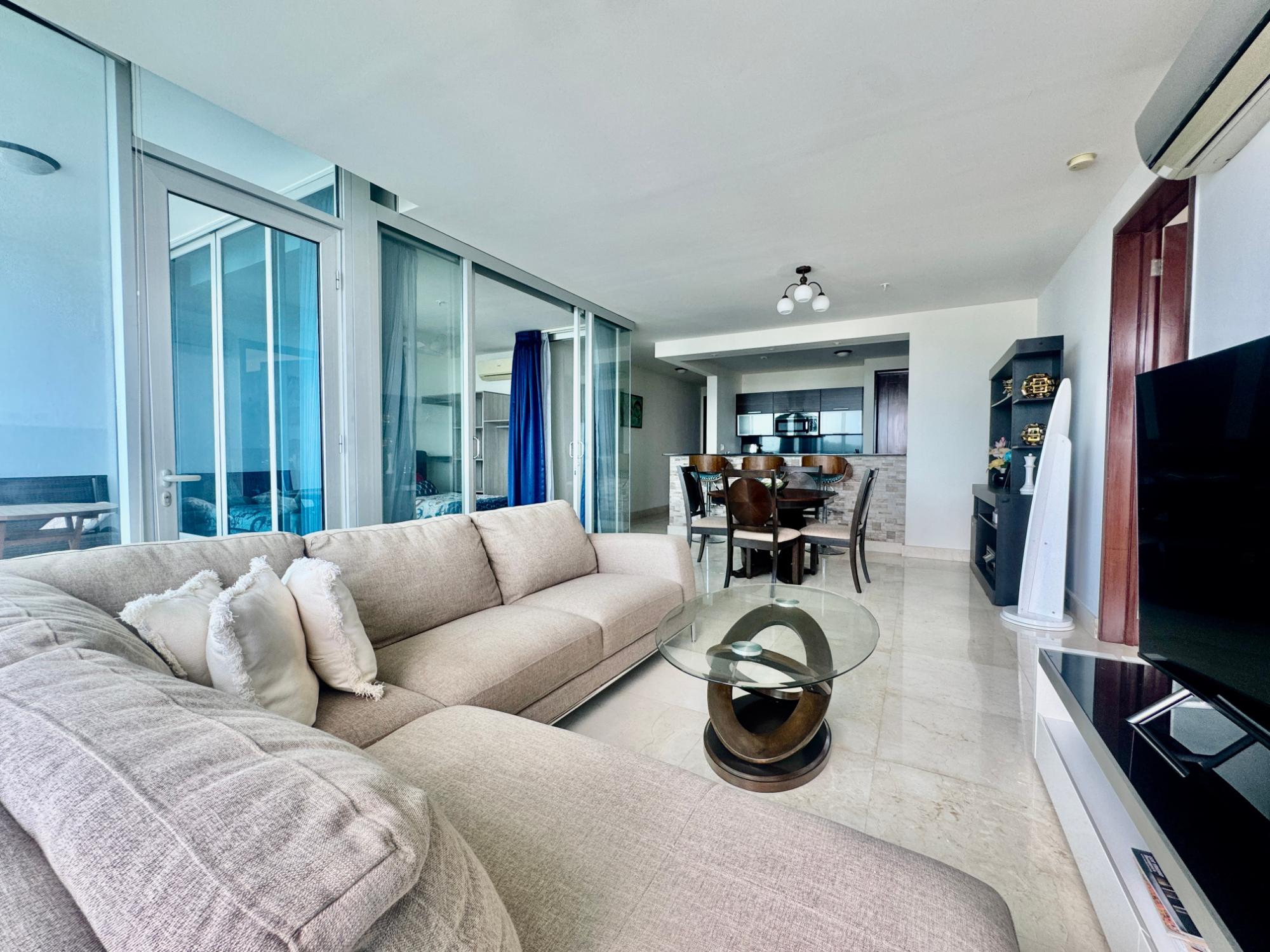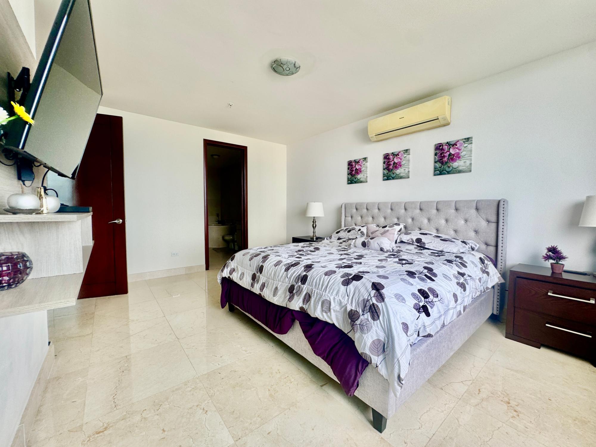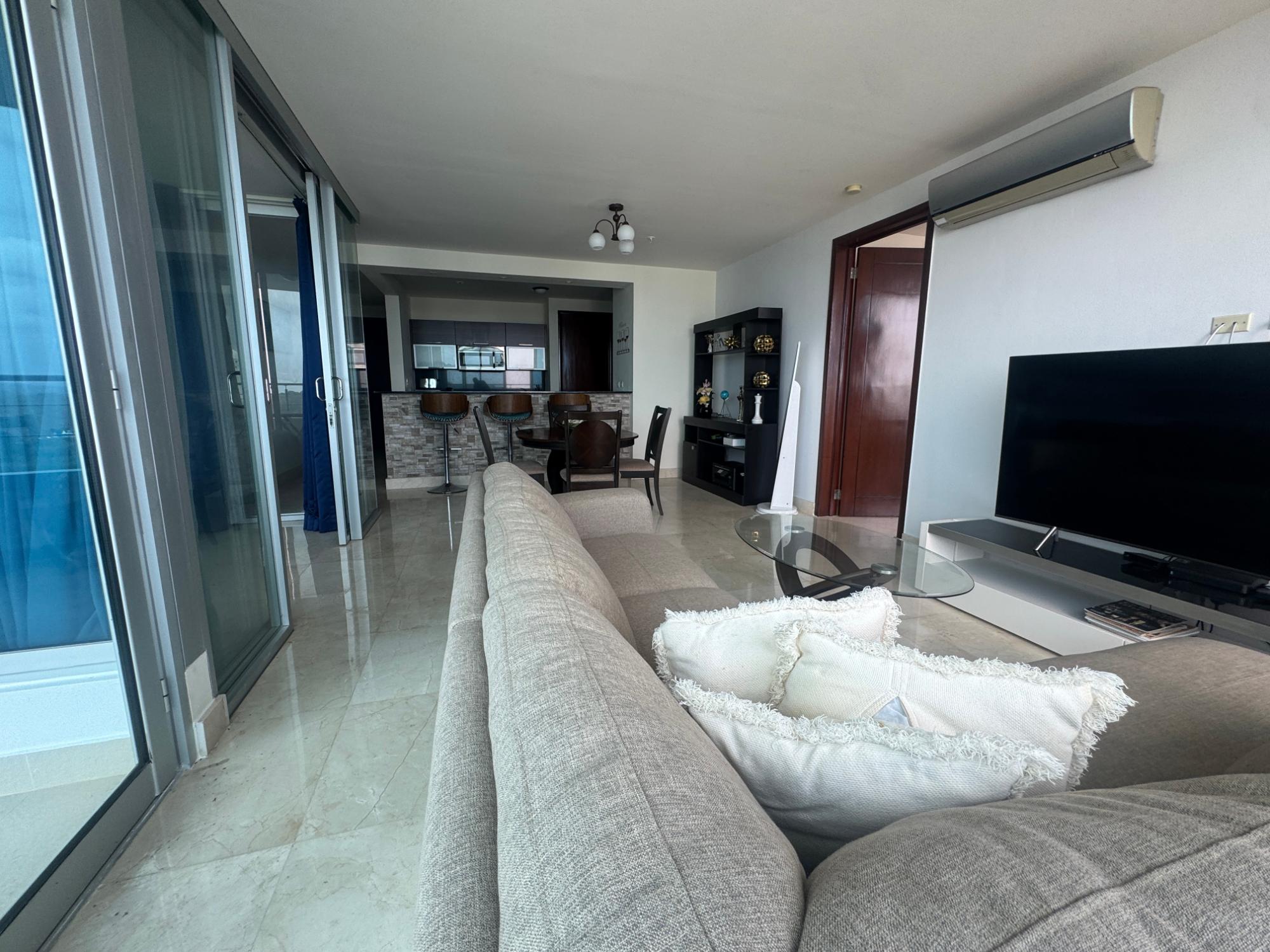 El apartamento cuenta con: •124m2 •Amoblado •2 recámaras •2 baños •2 estacionamientos •Balcón •Área de lavandería •Cocina abierta •Jaccuzi y amplio armario El Conjunto hotelero y residencial cuenta con: •Seguridad 24/7 •Restaurantes •Spa •2 Piscinas •Gimnasio •Sauna •Jaccuzi •Elegante Lobby El el área puedes encontrar supermercado Riba Smith, Farmacia, restaurantes, colegios, seguridad pública y privada y muchos mas beneficios en la zona.