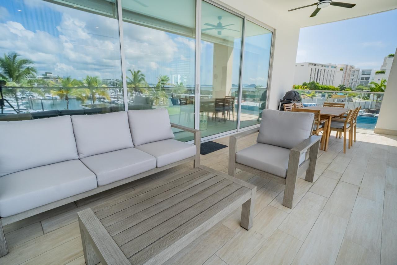 Ubicado en las exclusivas islas de Ocean Reef, Beach Club Residencias ofrece este excepcional apartamento de 3 recamaras que ofrece la fusión perfecta entre la serenidad costera y el lujo moderno. Con una superficie de 229,27 m², esta residencia meticulosamente diseñada brinda una experiencia de vida superior en la comunidad privada más prestigiosa de Panamá. El apartamento cuenta con 3 amplios dormitorios, cada uno con su propio baño, area de servicio completa y baño de visitas. Su sofisticado interior exhibe acabados de alta calidad, un elegante diseño contemporáneo y amplios ventanales que inundan el espacio de luz natural. Las impresionantes vistas al océano, la marina privada y a la ciudad desde el amplio balcón privado crean un telón de fondo fascinante, transformando cada momento en una escapada idílica. Disfrute de la comodidad de 3 estacionamientos, además del acceso a servicios de primera clase que definen el estilo de Beach Club Residences. Diseñada con el concepto de “vida de playa en la ciudad”, esta propiedad ofrece una escapada cautivadora que trasciende lo ordinario. Deléitese con la zona social de 80 metros, con dos piscinas y acceso directo a un muelle privado, además de acceso subterráneo a la marina y centro de actividades acuáticas, que evoca el encanto de South Beach en Miami. Aquí encontrará un bar de playa y una zona de barbacoa, el entorno perfecto para reuniones y celebraciones. Los amantes del fitness disfrutarán del gimnasio en la azotea, equipado con tecnología de vanguardia y vistas panorámicas de la ciudad y mar, creando recuerdos inolvidables con sus seres queridos. Beach Club Residences es, sin duda, un verdadero paraíso.