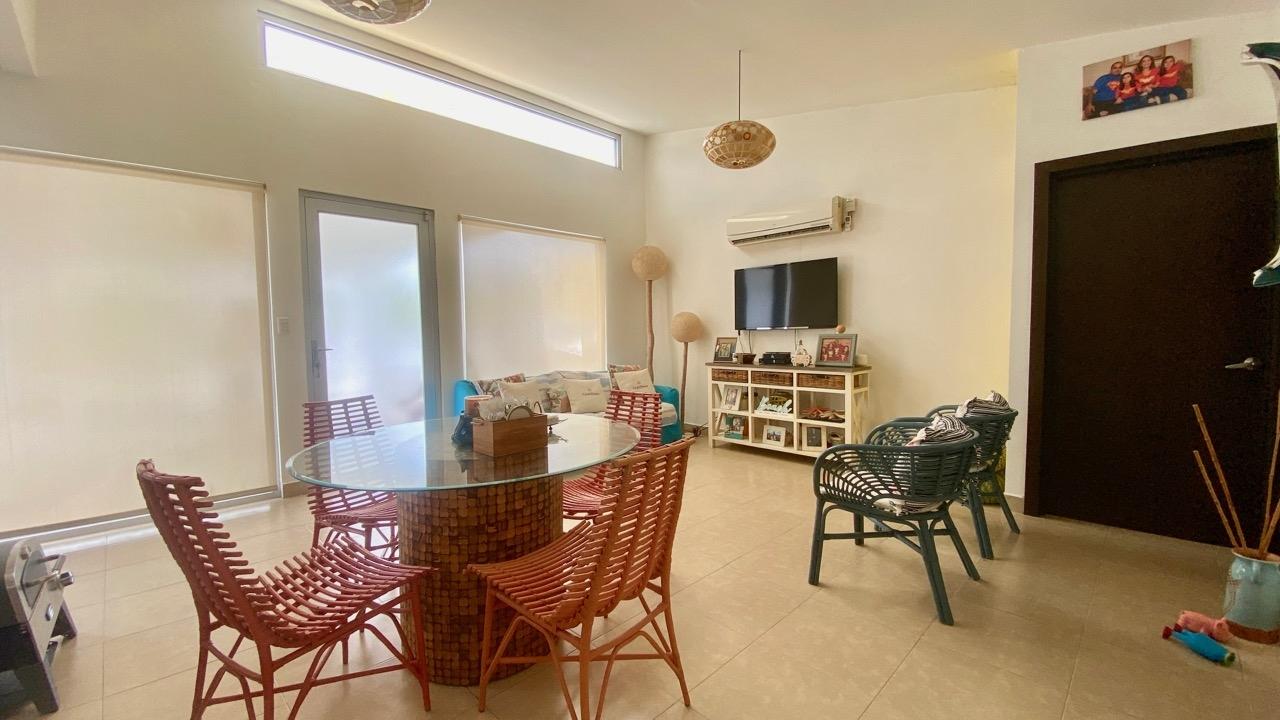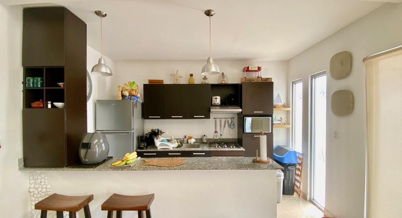Casa de 3 recamaras en un bonito complejo privado ubicado en la zona de Bijao (Río Hato), cerca de la famosa Playa Bijao. LA UBICACIÓN Ubicado en la zona de Río Hato, se encuentra el acogedor complejo de playa Ibiza Beach Residence. El complejo se divide en dos secciones, con un total de aproximadamente 150 unidades. Todas las casas son de una sola planta, con un pequeño jardín. Hay 4 piscinas distribuidas en las 2 áreas de la residencia. Y la playa está a solo 10 minutos del complejo. LA CASA Esta casa de playa de 3 recamaras está construida sobre un terreno de 229 metros cuadrados, con una superficie total de 100 metros cuadrados. Se compone de la siguiente manera: •Sala de estar con cocina abierta •Recamara principal con baño en suite y acceso a la terraza trasera •Segunda recamara •Tercera recamara •Baño independiente •Lavandería •Deposito de jardín con tanque de reserva de agua y bomba de presión •Terraza techada trasera con zona de barbacoa y bar •2 plazas de aparcamiento EL PROYECTO En muy buen estado, completamente amueblada, esta encantadora casa de 3 dormitorios será el refugio perfecto del bullicio de la ciudad para usted y su familia. Además, se encuentra a pocos pasos de una bonita piscina con tumbonas, ideal para disfrutar de un baño cerca de la casa.