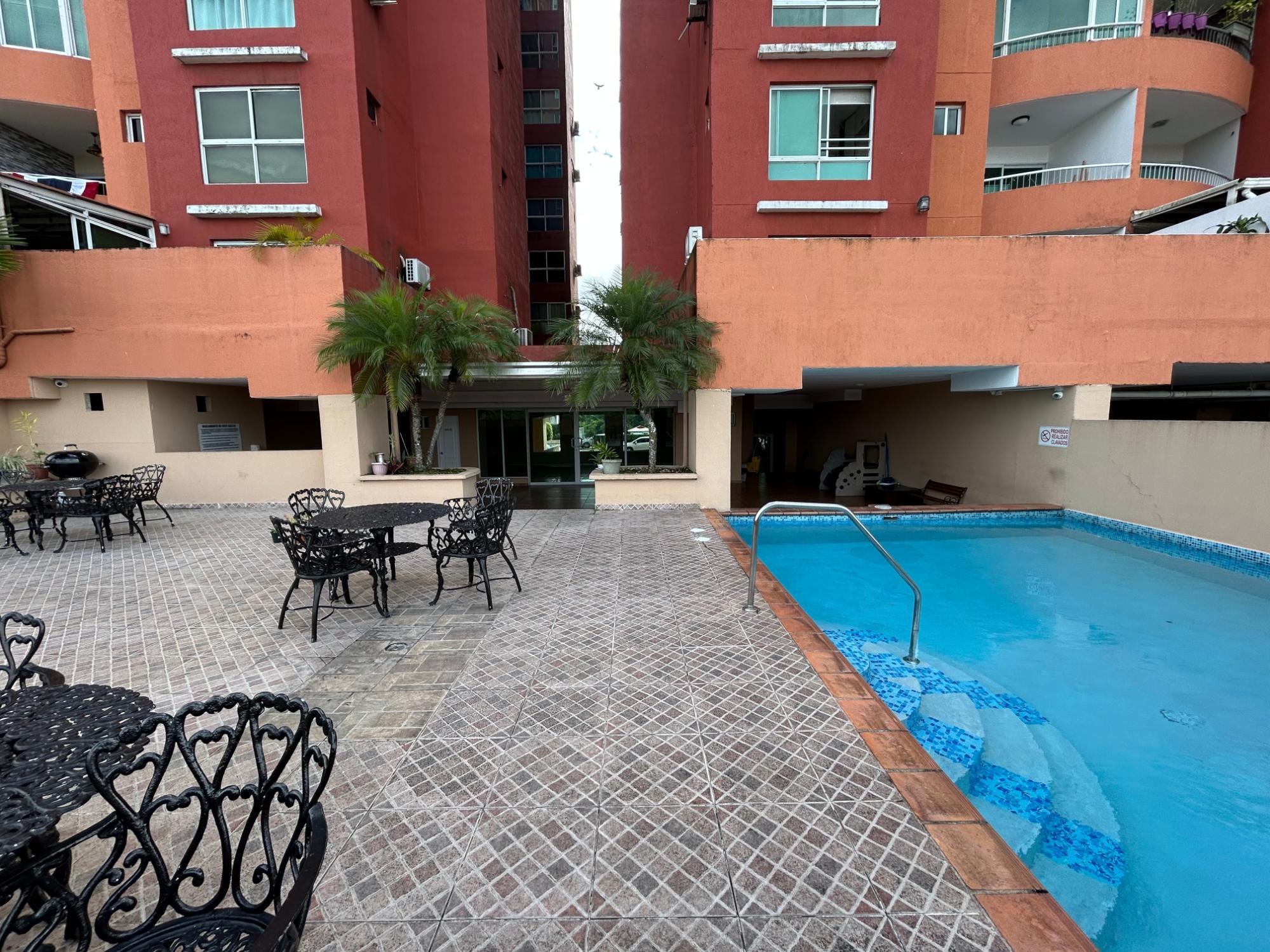 La propiedad incluye dos dormitorios y tres baños, ofreciendo amplio espacio para los residentes. La unidad se vende completamente amueblada y el precio de venta incluye los electrodomésticos, un juego de lavadora-secadora, estufa y refrigerador. La cuota de mantenimiento es actualmente de $130, que cubre el gas y el mantenimiento de las áreas comunes. El complejo de condominios incluye una variedad de comodidades, como una piscina, estacionamiento para visitantes, áreas sociales, un salón de fiestas, un área de juegos para niños, dos tanques de reserva de agua y dos ascensores de alta velocidad. El lobby cuenta con seguridad las 24 horas y un servicio de conserjería, lo que garantiza la seguridad y la comodidad de todos los residentes.