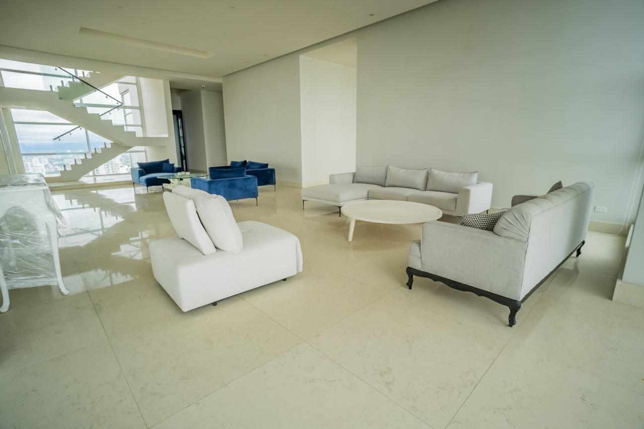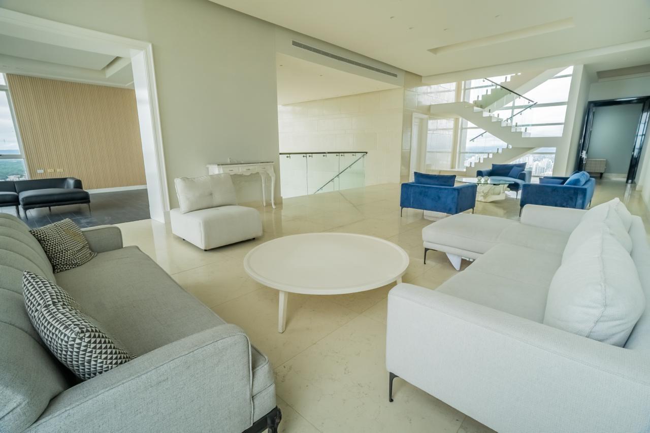 Acerca del Apartamento: Este extraordinario ático de cuatro niveles redefine la vida de lujo, con una impresionante superficie de 1.150 metros cuadrados de exquisito diseño y atención al detalle. Cada nivel revela una atmósfera de grandeza, combinando espacios abiertos, techos altos e impresionantes vistas panorámicas. Nivel 1: Refugio Privado. Con techos de 3,75 metros de altura, esta planta ofrece 4 amplias habitaciones, cada una con su propio baño privado y armarios de diseño italiano. Una lavandería totalmente equipada y una sala de control técnico brindan una comodidad excepcional. El ascensor de servicio se abre directamente a este nivel a través de una puerta multipuerta, garantizando total privacidad. Una amplia sala de estar completa este espacio, ideal para relajarse o recibir invitados. Nivel 2: Grandes Espacios de Vida. Con 4,5 metros de altura, este nivel le da la bienvenida a través de un vestíbulo privado con tres ascensores. La espaciosa cocina moderna está equipada con electrodomésticos VIKING —incluyendo refrigerador, máquina de hielo, estufa, horno y microondas— diseñados para los chefs más exigentes. El comedor tiene capacidad para 14 comensales y cuenta con un área privada para desayunar. Un sofisticado estudio con pisos de madera noble, una amplia sala de estar y ventanales de piso a techo ofrece impresionantes vistas de la ciudad, combinando elegancia y confort. Nivel 3 – Exclusivo Santuario en la Azotea: Un oasis inigualable en la azotea, diseñado para el entretenimiento y la relajación. Con área de barbacoa con conexión de gas, sistema de sonido integrado, baño privado y control inteligente de iluminación, esta azotea ofrece vistas panorámicas despejadas de los lugares más emblemáticos de la Ciudad de Panamá: Cerro Ancón, el Puente de las Américas, el Puente del Centenario, la Calzada de Amador, el Casco Antiguo y la Cinta Costera.