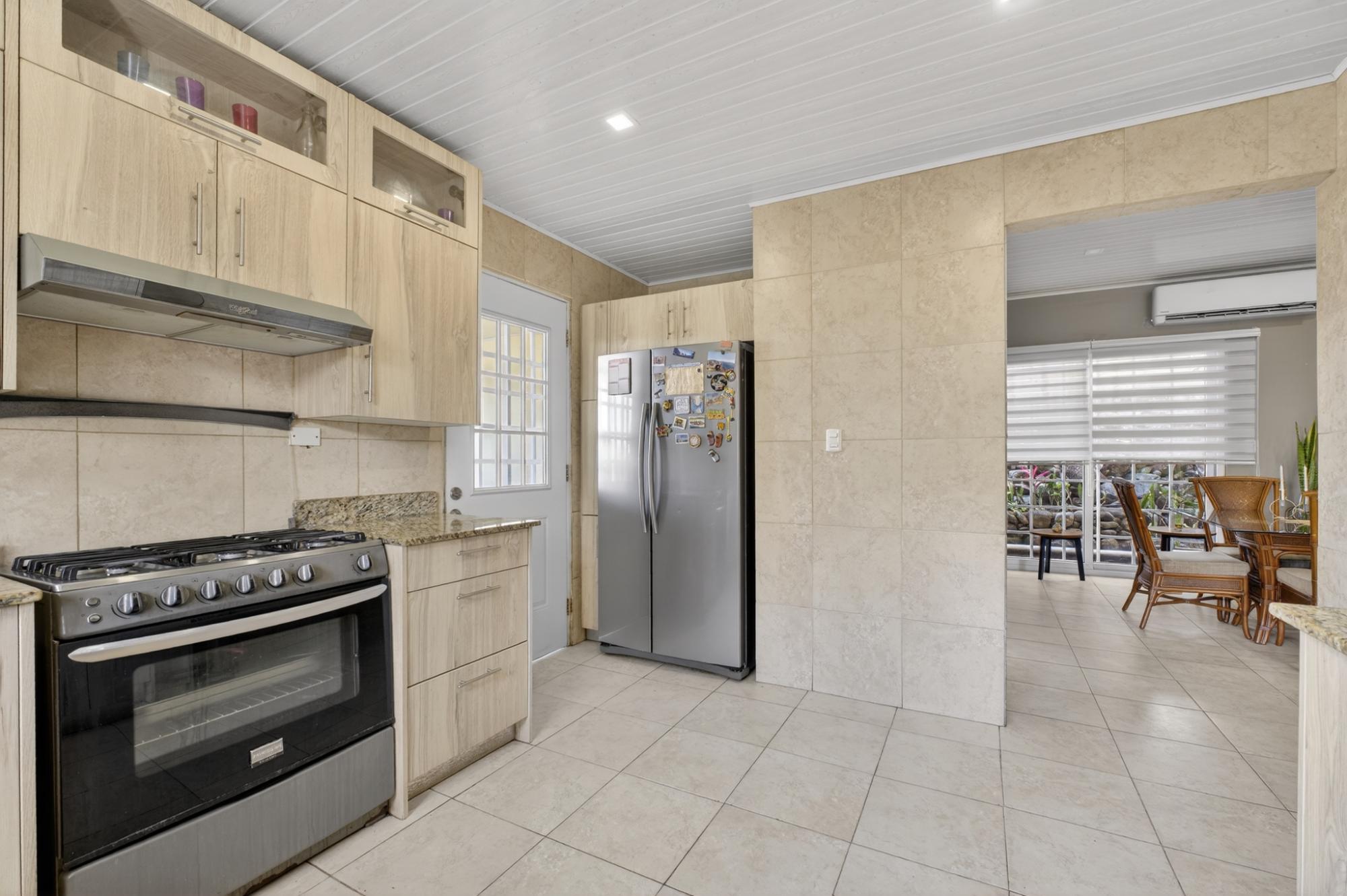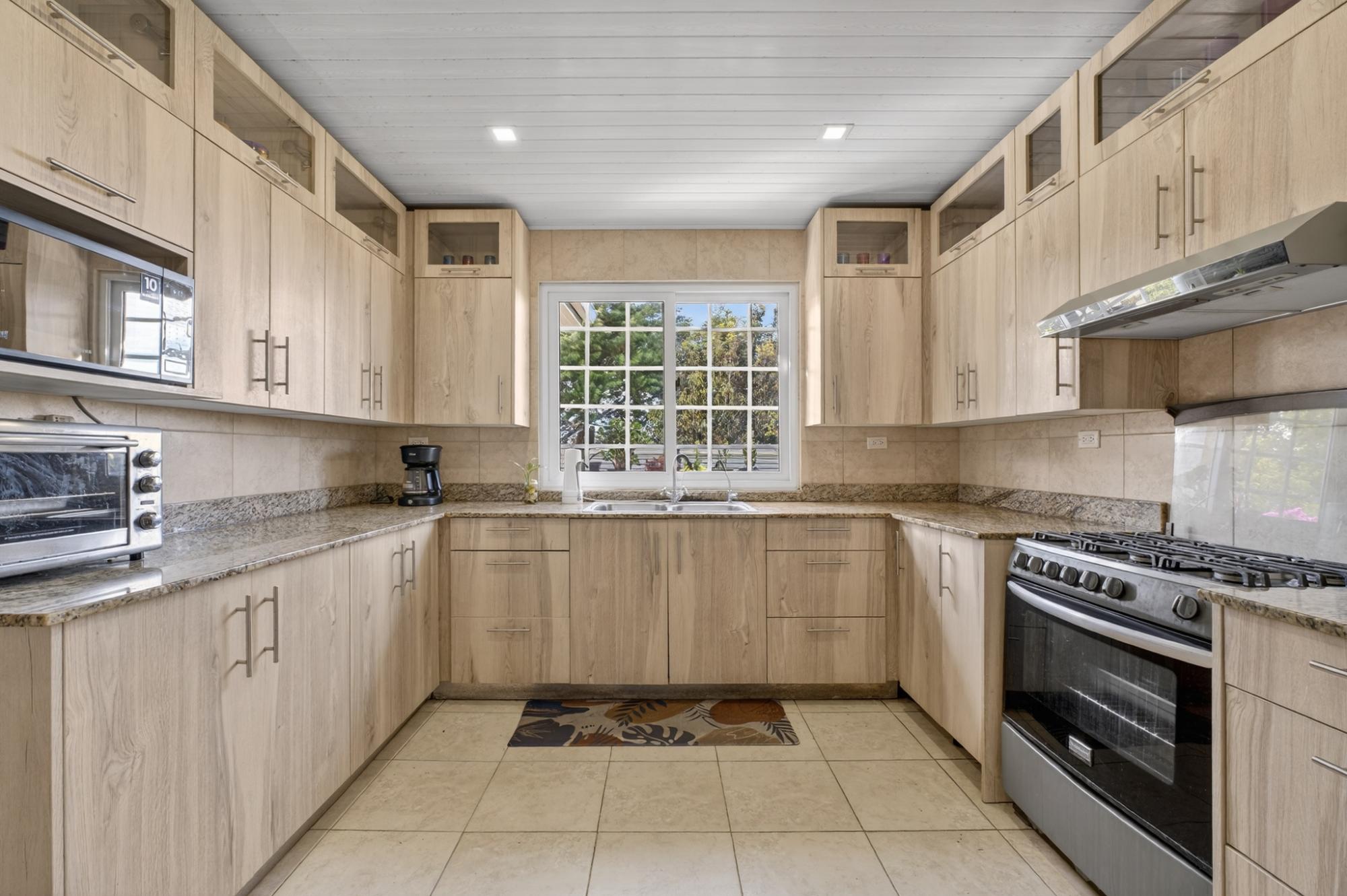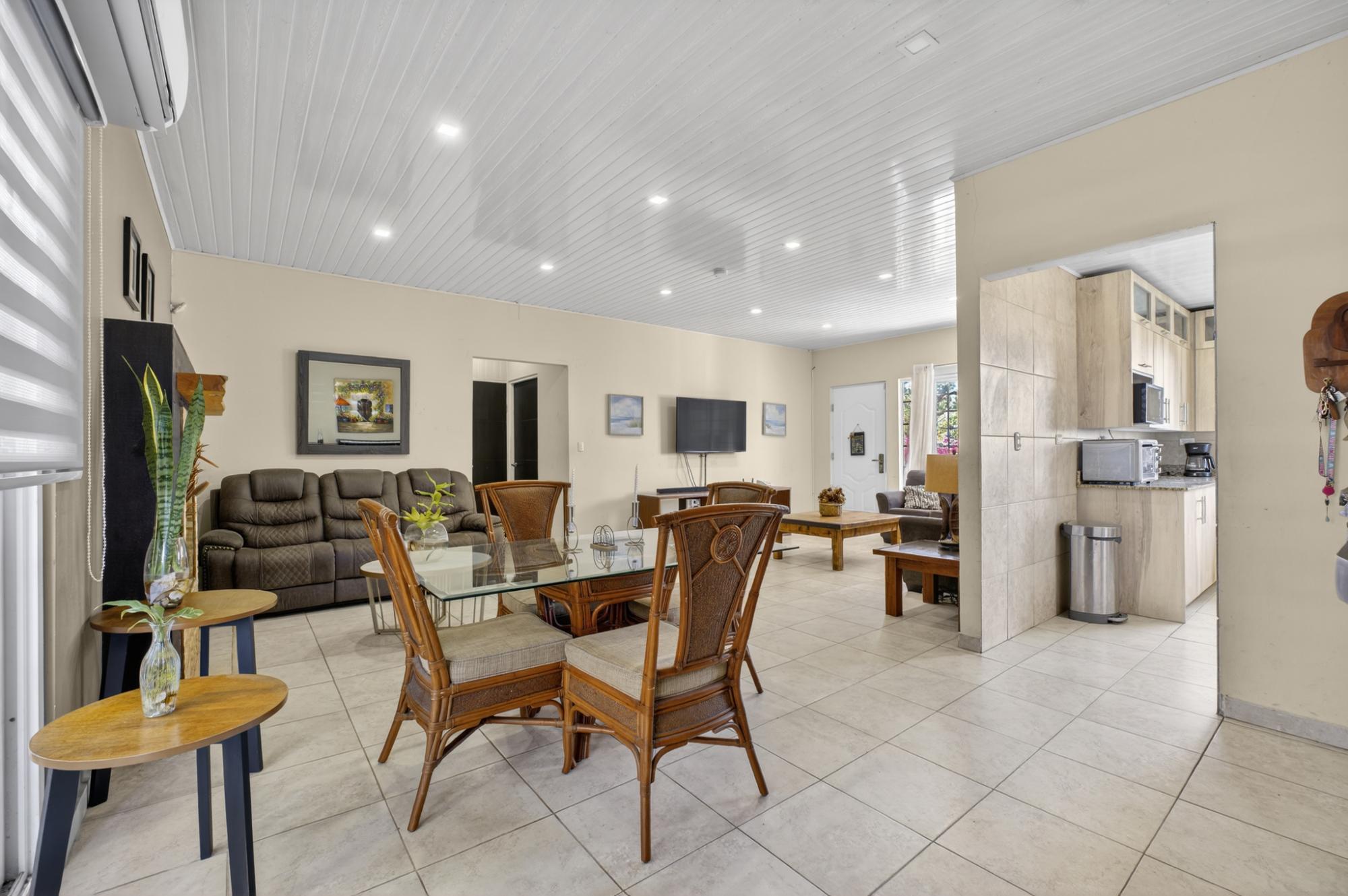 Ubicada en Alto Boquete, a solo cinco minutos del centro, esta encantadora casa de 2 dormitorios y 2.5 baños ofrece comodidad, luz y espacios habitables bellamente diseñados en un vecindario seguro y acogedor. La espaciosa sala de estar cuenta con chimenea y grandes puertas que dan al patio y brindan abundante luz natural. Una amplia y moderna cocina ofrece amplios gabinetes, encimeras de granito y un excelente espacio de trabajo. El dormitorio principal es impresionantemente grande, con baño en suite, vestidor y gabinetes a medida con cajones empotrados. El dormitorio de invitados también cuenta con un armario a medida con excelente espacio de almacenamiento. Una amplia área de lavandería con gabinetes adicionales agrega comodidad. La vida al aire libre se realza con una terraza cubierta con vista a un patio cercado y cerrado con magníficos jardines. Desde el frente de la casa se disfrutan hermosas vistas a las montañas. Muy segura, tranquila y con una ubicación ideal cerca del pueblo, esta propiedad es perfecta para vivir a tiempo completo o para un retiro en Boquete.