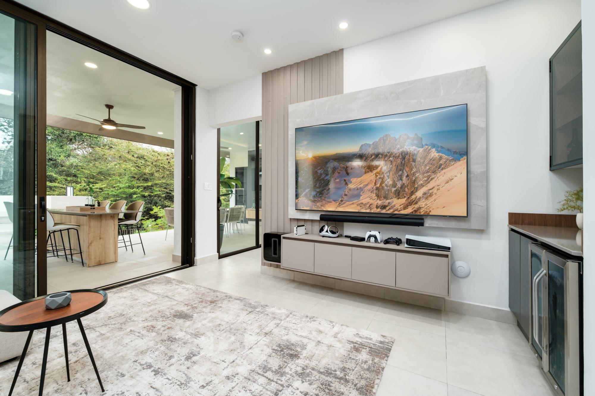 Esta impresionante casa contemporánea de dos plantas en Lucero Golf and Country Club destaca por su elegancia y confort modernos. La planta baja cuenta con una luminosa sala de estar, una cocina de diseño con encimeras de Silestone, gabinetes a medida, barra desayunadora y electrodomésticos de alta gama. Una elegante sala familiar con muebles empotrados y vinoteca se abre a una impresionante área exterior con cocina, barbacoa, enfriador de vinos y una acogedora zona de estar con fogata. También en la planta baja se encuentra una habitación de invitados con baño privado, tres aseos y una espaciosa lavandería con espacio de almacenamiento. La planta superior ofrece una magnífica suite principal con balcón con vistas al río, un amplio vestidor y un lujoso baño, además de una tercera habitación de invitados con baño privado. Totalmente amueblada, decorada por profesionales, con sistema de riego automático, garaje para dos coches y vistas espectaculares.