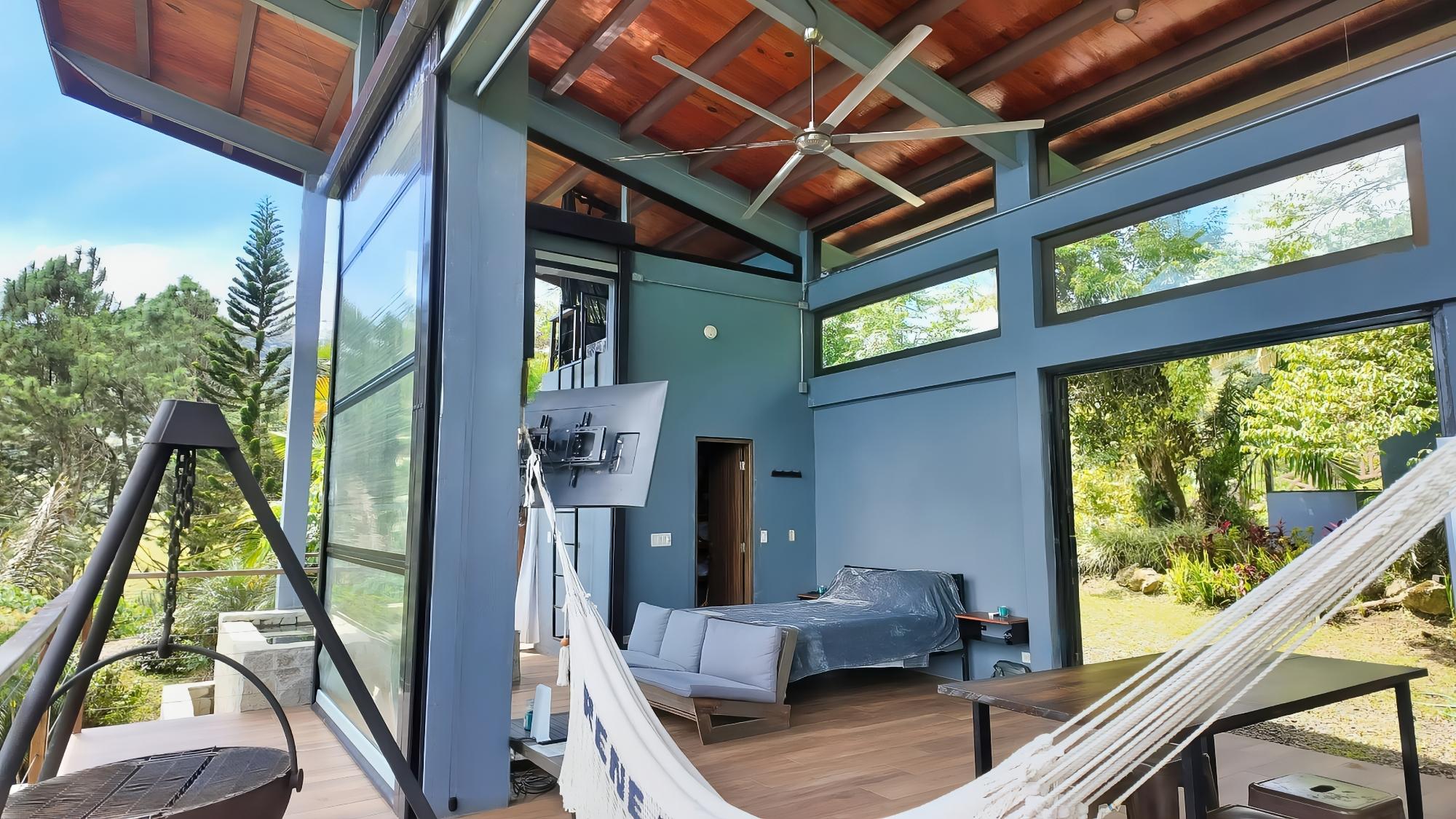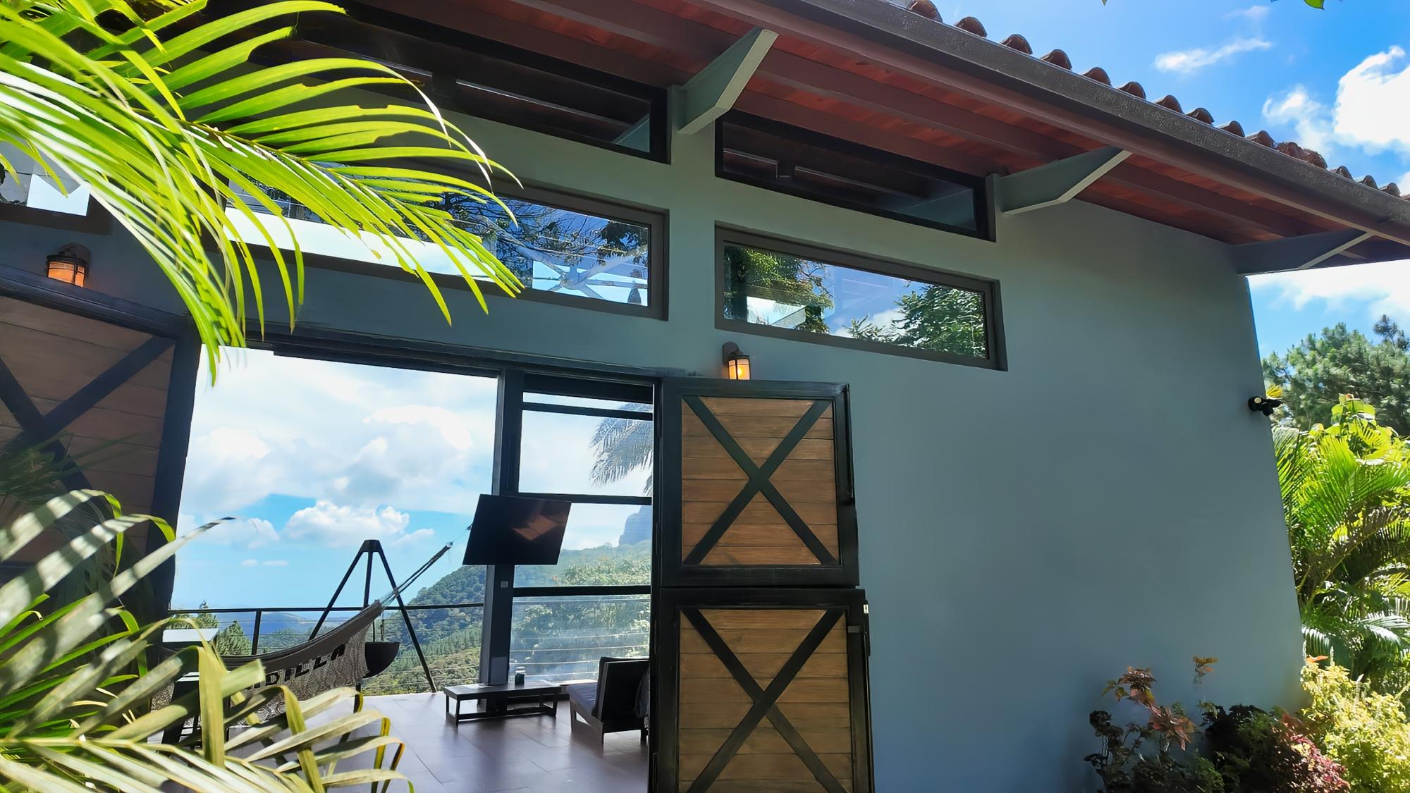 En la zona alta de Altos del María, a 900 metros sobre el nivel del mar, se encuentra esta casa moderna diseñada para quienes buscan un espacio acogedor, rodeado de naturaleza y vistas que inspiran. Con un terreno amplio de 3,768 m², la propiedad ofrece una panorámica espectacular al Cerro Picacho, uno de los paisajes más icónicos de esta comunidad campestre. El diseño es de concepto abierto tipo monoambiente, con doble altura de piso a techo y ventanales plegables que se recogen por completo para integrar la terraza, la brisa fresca de montaña y la vista en un solo ambiente continuo. La terraza es amplia e incluye una cómoda zona de asado. A un costado, de forma discreta, se ubica un espacio cerrado con puerta que integra la lavandería y un closet de apoyo. En ese mismo costado —con una vista preciosa a las montañas— se encuentra el jacuzzi junto al baño completo. Allí también está la escalera que conduce al altillo, un rincón perfecto como segunda zona de descanso, lectura o contemplación, siempre acompañado de la vista verde y el clima fresco de Altos del María. Una casa moderna, práctica y acogedora, pensada para vivir la montaña con estilo, privacidad y la paz que sólo Altos del María puede ofrece