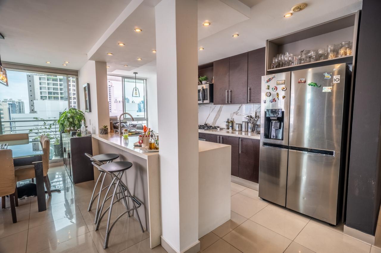 Este espacioso apartamento mide 160,75 m² y ha sido cuidadosamente diseñado para maximizar la luz natural y la comodidad de una vida moderna. Con 3 dormitorios, cada uno con su propio baño para mayor privacidad, y un total de 3,5 baños, esta casa es ideal para familias o profesionales que valoran tanto el espacio como la funcionalidad. La propiedad incluye una cocina totalmente equipada con acabados en blanco, elegantes acabados y amplio espacio de almacenamiento. La sala de estar y el comedor, de concepto abierto, se integran a la perfección, creando el ambiente perfecto para recibir invitados o disfrutar de momentos en familia. Con 2 plazas de aparcamiento privadas, la comodidad y la seguridad están garantizadas. PH Citrus es una de las torres residenciales más codiciadas de San Francisco, que combina un diseño contemporáneo con la comodidad urbana. Con una ubicación ideal en uno de los barrios más vibrantes de la Ciudad de Panamá, el edificio ofrece a sus residentes un equilibrio perfecto entre comodidad y accesibilidad. Con su arquitectura moderna, un entorno seguro y un ambiente acogedor, PH Citrus ofrece un estilo de vida que combina la energía de la ciudad con la tranquilidad residencial. Vivir en PH Citrus significa disfrutar de una amplia gama de comodidades modernas, incluyendo: Elegante vestíbulo con seguridad 24/7 Área social con piscina y solárium Gimnasio totalmente equipado Área de juegos infantiles Salón de eventos para reuniones privadas Amplio estacionamiento para visitas