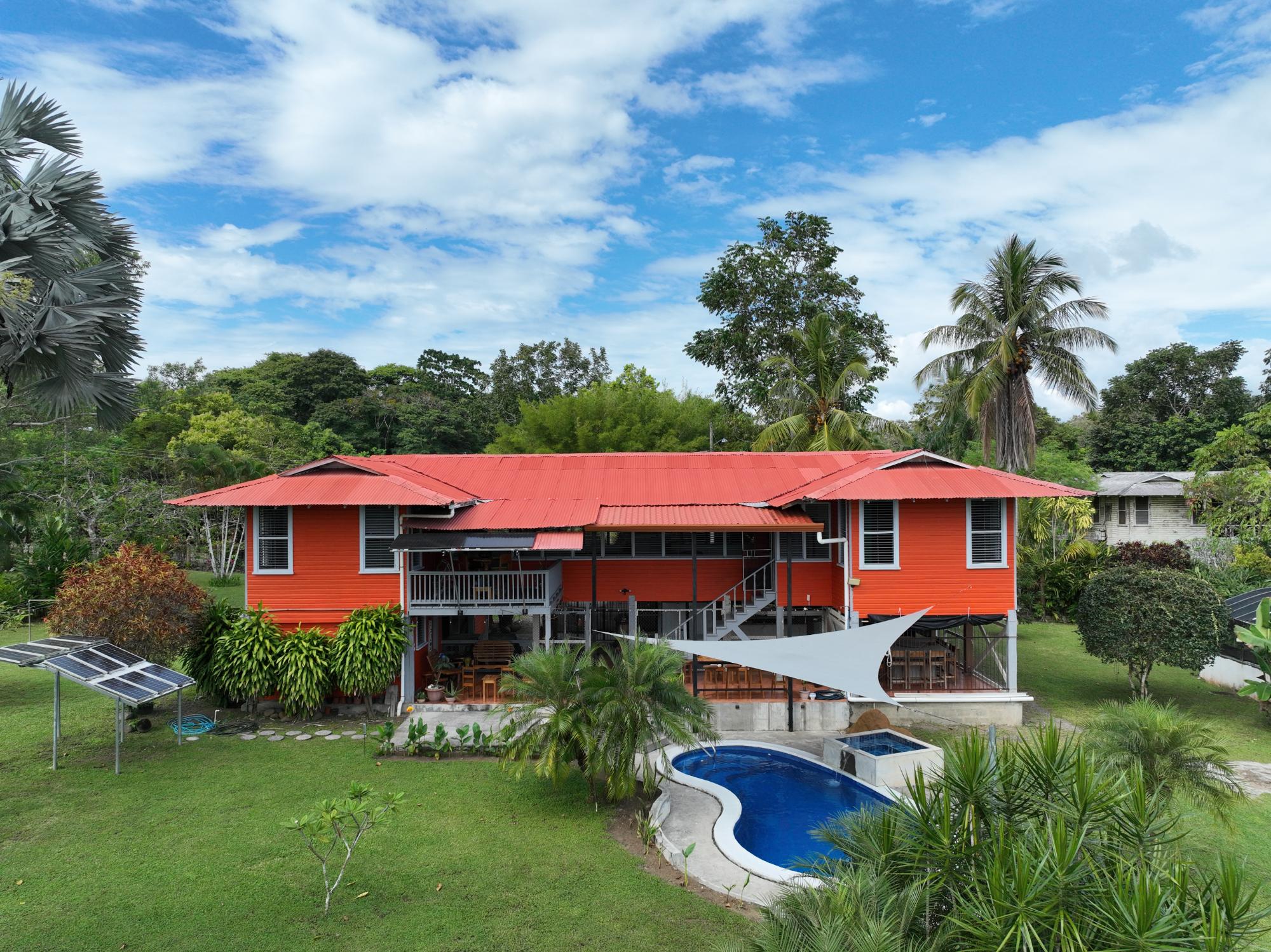 Esta propiedad, titulada y completamente cercada, se encuentra en el barrio Las Palmas de Puerto Armuelles, Chiriquí. El lote cuenta con áreas verdes abiertas, vegetación madura y secciones con vista al mar. Con una casa principal de aproximadamente 3,400 pies cuadrados y una casita de 750 pies cuadrados, la propiedad ofrece múltiples espacios habitables y áreas exteriores funcionales. Se encuentra al final de una calle sin salida, lo que proporciona un entorno más tranquilo dentro del vecindario. La casa principal es una de las históricas Chiquita Executive Plantation Homes de Las Palmas. Su distribución incluye áreas de estar elevadas, amplios patios cubiertos y un diseño al aire libre adaptado al clima local. La casita independiente se construyó en 2021. Está lista para mudarse y es ideal para invitados o para generar ingresos por alquiler. Pocas propiedades en Puerto Armuelles incluyen una segunda estructura de este tamaño y estado. La propiedad incluye una piscina privada y una bañera de hidromasaje. Esta característica es poco común en Las Palmas, donde pocos lotes residenciales cuentan con piscina privada. El área de la piscina recibe la luz del amanecer y ofrece vistas abiertas al océano. El lote cuenta con amplios jardines, palmeras, plantas ornamentales y árboles frutales. Su diseño abierto permite la jardinería, la plantación de plantas adicionales o la posibilidad de construir futuras estructuras. El terreno tiene una suave pendiente natural que facilita la visibilidad del océano desde ciertos puntos. Incluye sistema solar de 1.8 kW, 3 tanques de agua con una capacidad total de aproximadamente 3,400 litros y sistema de seguridad. Estos elementos aportan seguridad a la vida diaria y reducen la dependencia de los servicios públicos.