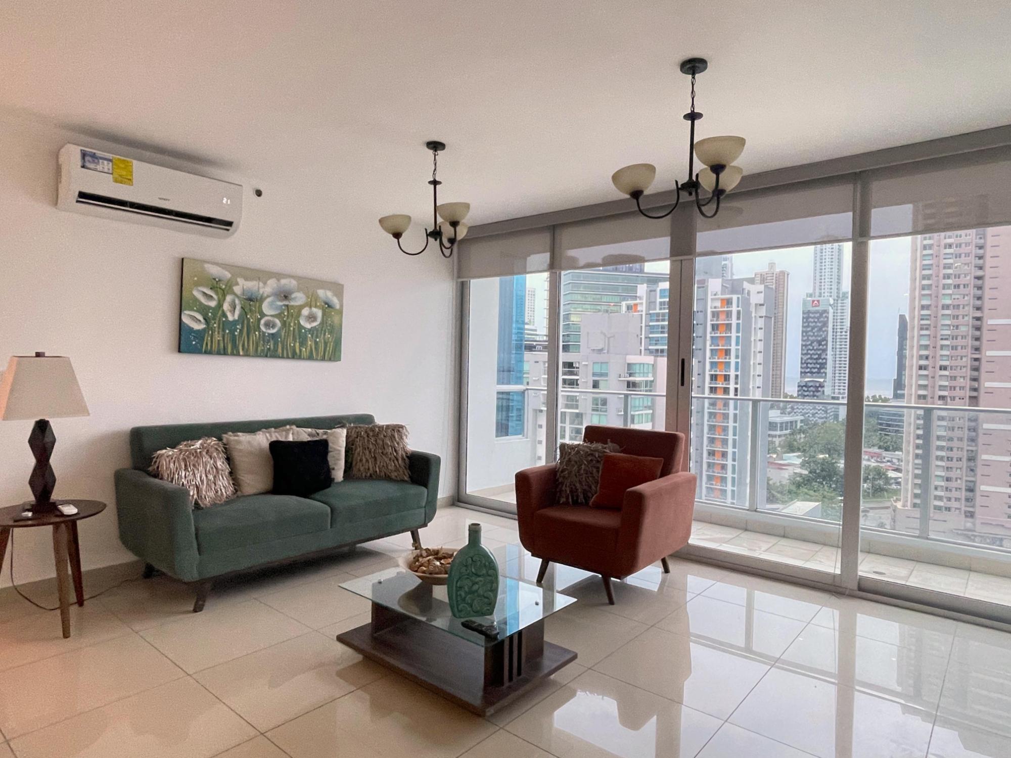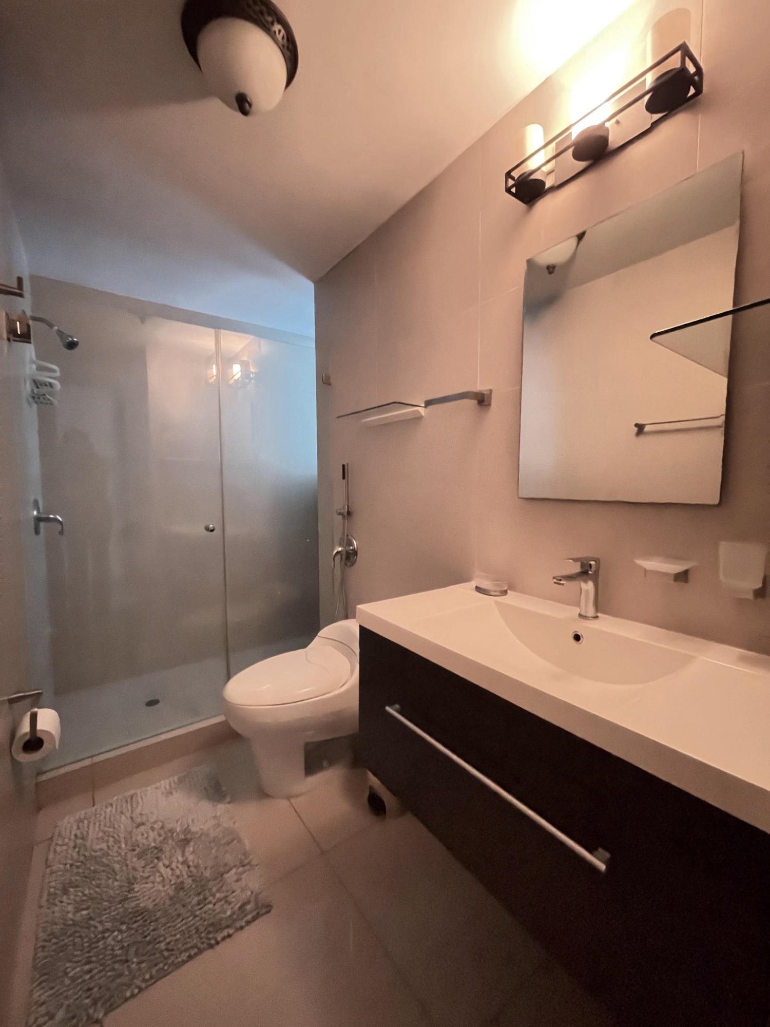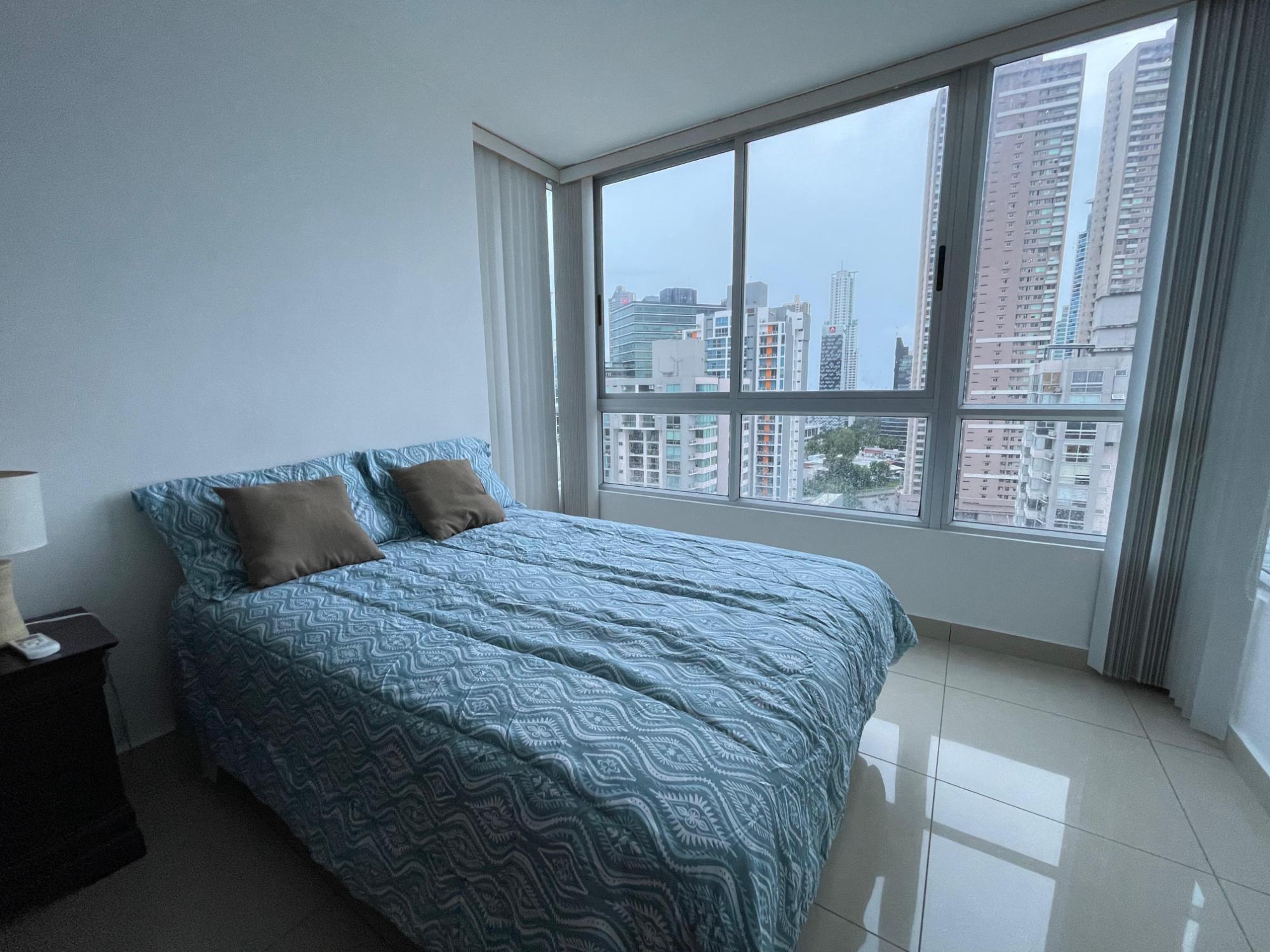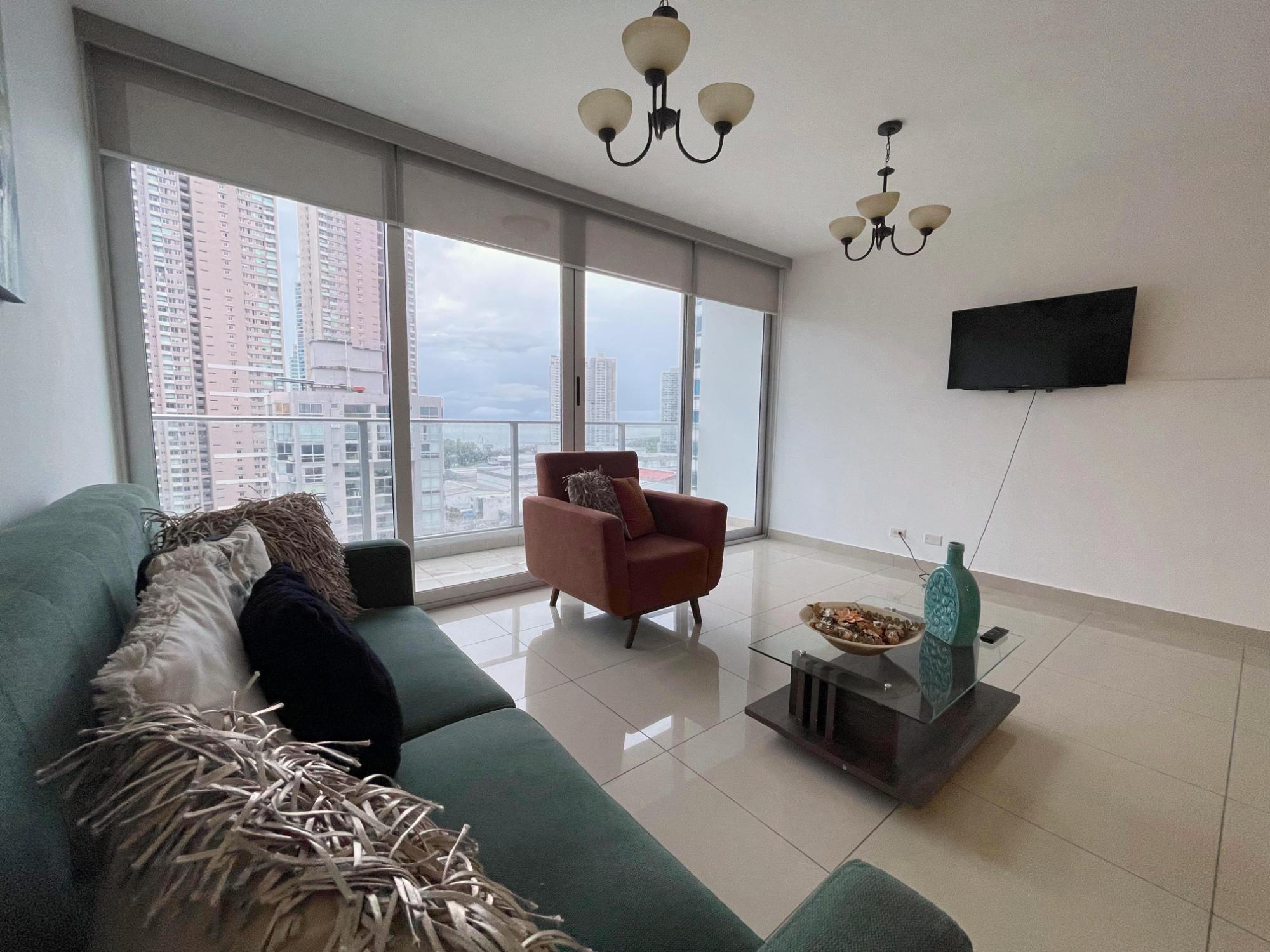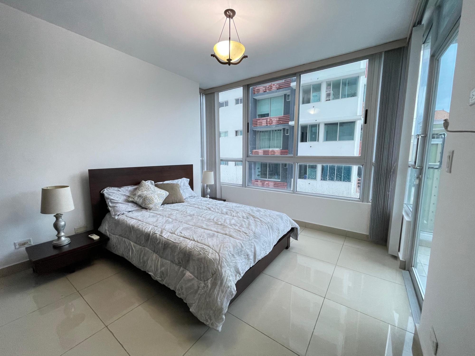Hermoso apartamento luminoso y muy cómodo en Top Towers, Costa del Este Disfruta de espectaculares vistas desde este apartamento completamente amoblado, con cocina tipo kitchenette y balcón. Cuenta con 106 m² distribuidos en 2 recámaras, 2 baños completos, cuarto y baño de empleada, 2 balcones (uno en la sala y otro en el cuarto principal) y 1 estacionamiento. El edificio ofrece amenidades de lujo, incluyendo elevadores de alta velocidad, planta eléctrica total, seguridad 24 horas, estacionamientos privados, extensa área social, gimnasio, parque infantil, 3 piscinas, jacuzzi, sauna, sala de cine, cancha de squash, sala de juegos y solarium. Una excelente oportunidad para vivir con comodidad, estilo y todas las facilidades a tu alcance.