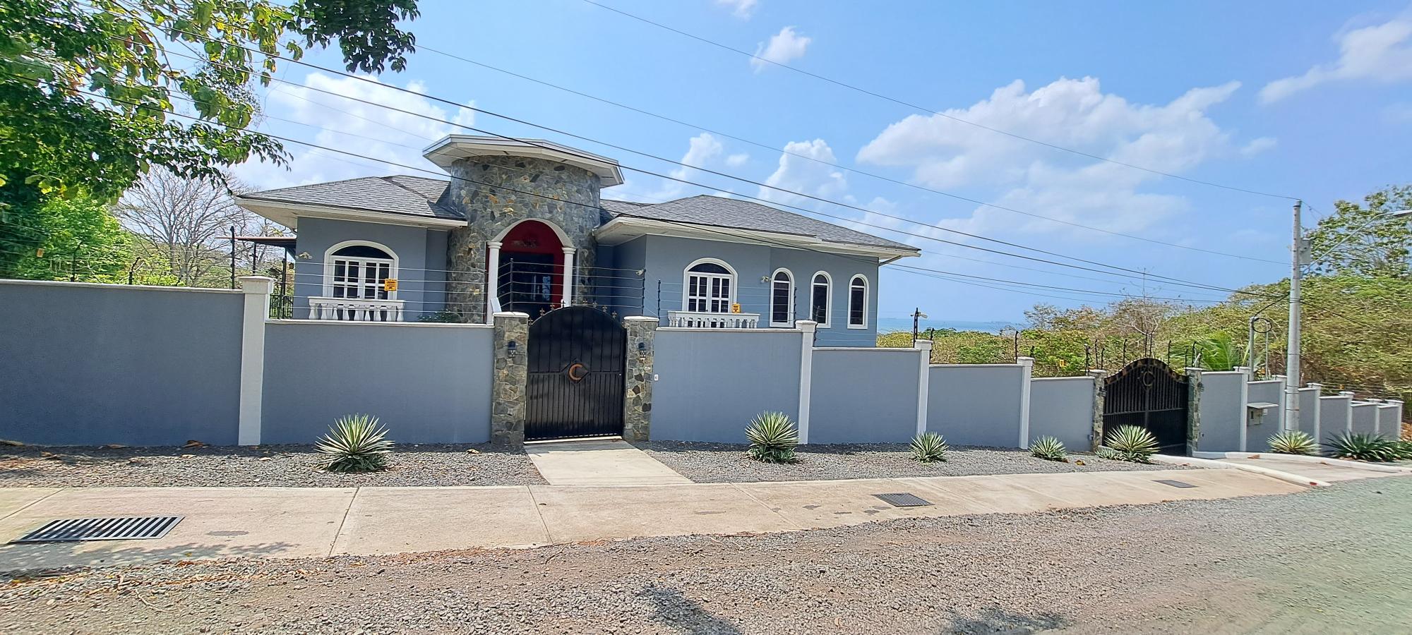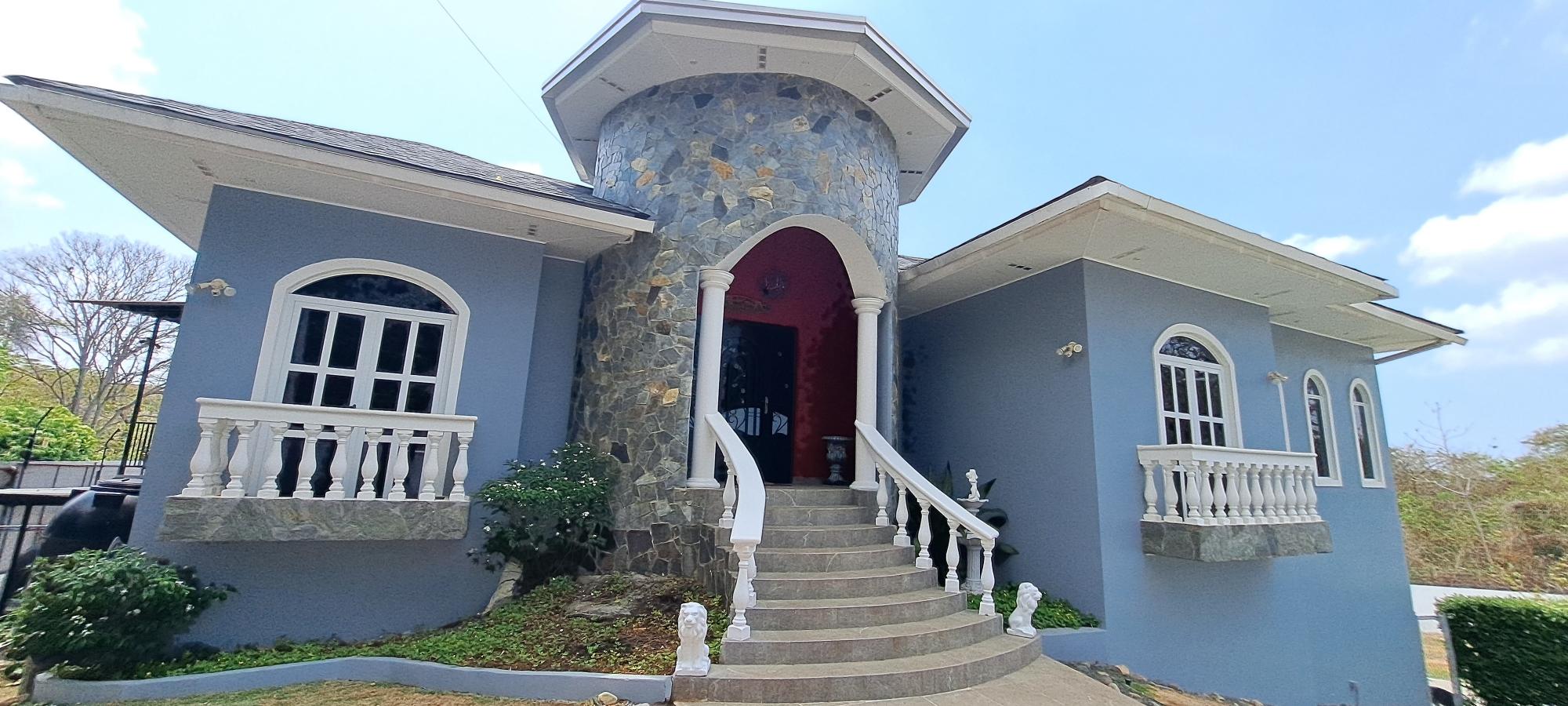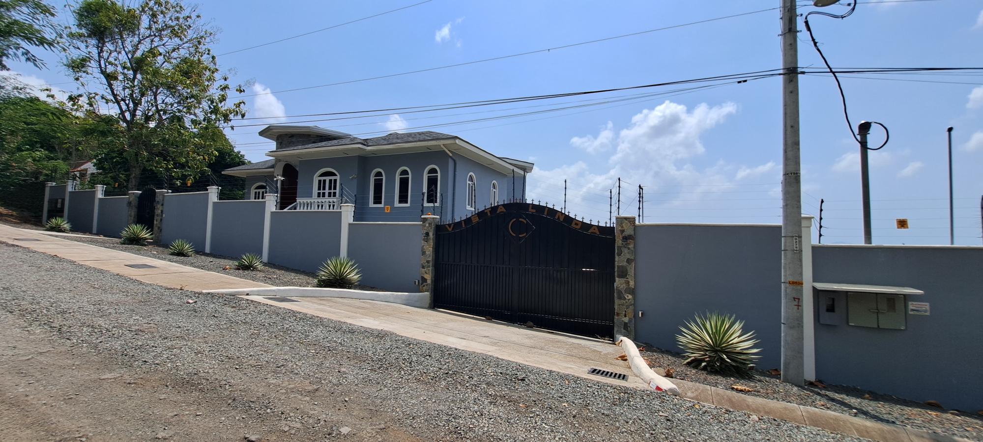 Se vende esta magnífica casa de dos niveles totalmente amoblada, con piscina y vista al mar, ubicada en Majagual, Panamá Oeste a 5 min de la playa. Esta propiedad cuenta con un área construido de 481.93 M2 con una superficie total de terreno de 2.500 M2. En la planta baja, la casa cuenta con un amplio estacionamiento para 3 vehículos, 1 depósito, 1 taller, terraza techada, baño de visita y área de lavandería techada. Además, se encuentra un apartamento completo para visitas con entrada independiente, que incluye una habitación completa con baño interno y walk-in closet, una pequeña sala-comedor, una cocina con estufa a gas independiente (119 M2). La planta alta presume de una fachada con estilo mediterráneo, una sala y comedor decorados con lámparas importadas desde Italia, una cocina completa con azulejos importados y una isla de preparación de alimentos con elevador de carga para subir las compras desde el estacionamiento. La recámara principal cuenta con baño interno completo, lavamanos individuales, ducha de hidromasaje, amplio walk-in closet y balcón con vista al mar. La recámara secundaria también tiene baño interno completo, decoración con diseño marinero, vista al jardín y closet completo. Un baño de visita y un balcón con vistas panorámicas a la naturaleza que rodea el Canal de Panamá y al mar completan este nivel. La casa se ha mejorado con una serie de características adicionales, como una escalera de servicio que comunica la planta baja con la cocina, una planta eléctrica a gas, 3 tanques de agua potable, 32 paneles solares, drenaje frontal, sistema de riego frontal para grama, tanque séptico, sistema de seguridad perimetral con cerca eléctrica, cámaras de seguridad y luces por sensor. Adicionalmente, la propiedad cuenta con un anexo de estacionamiento para 2 vehículos, una piscina con cascada y áreas verdes con vistas panorámicas.