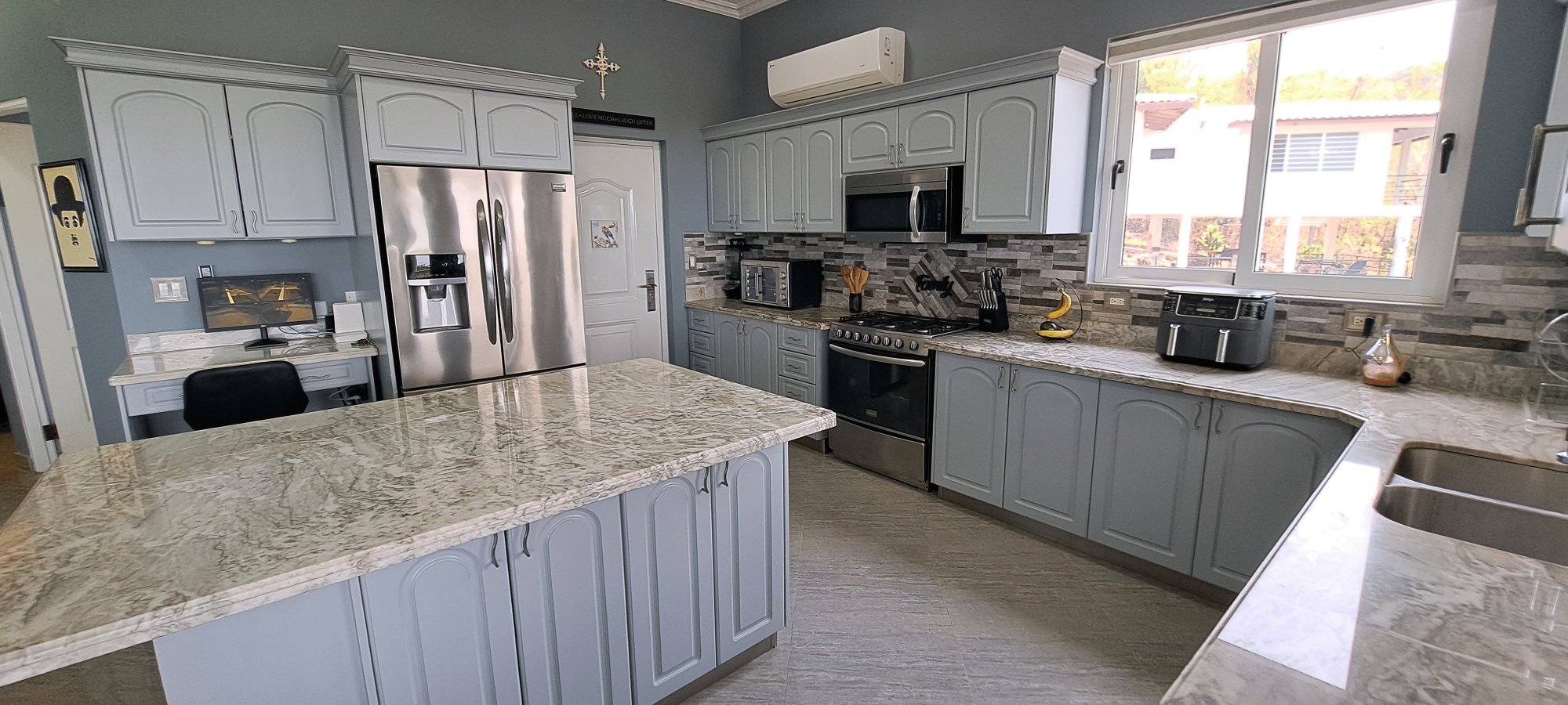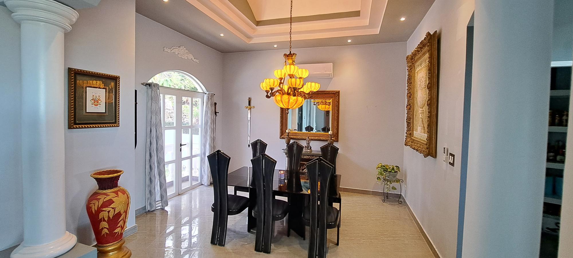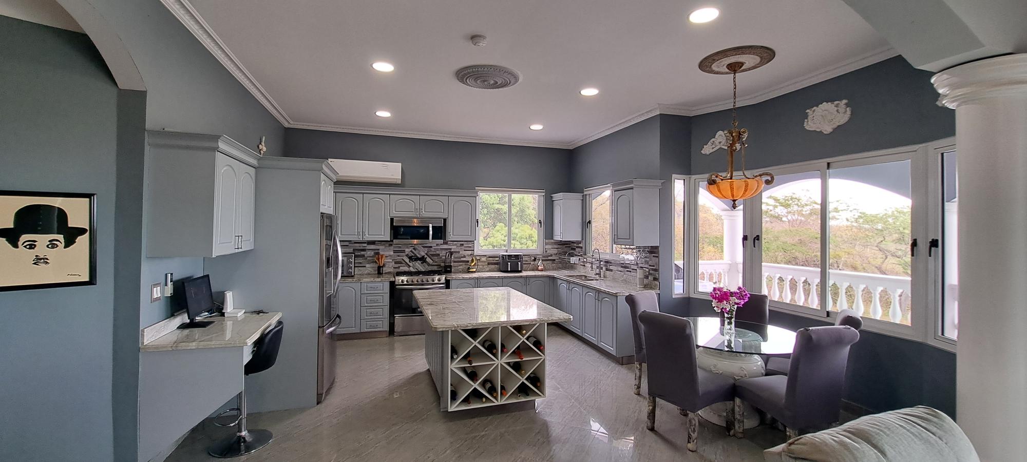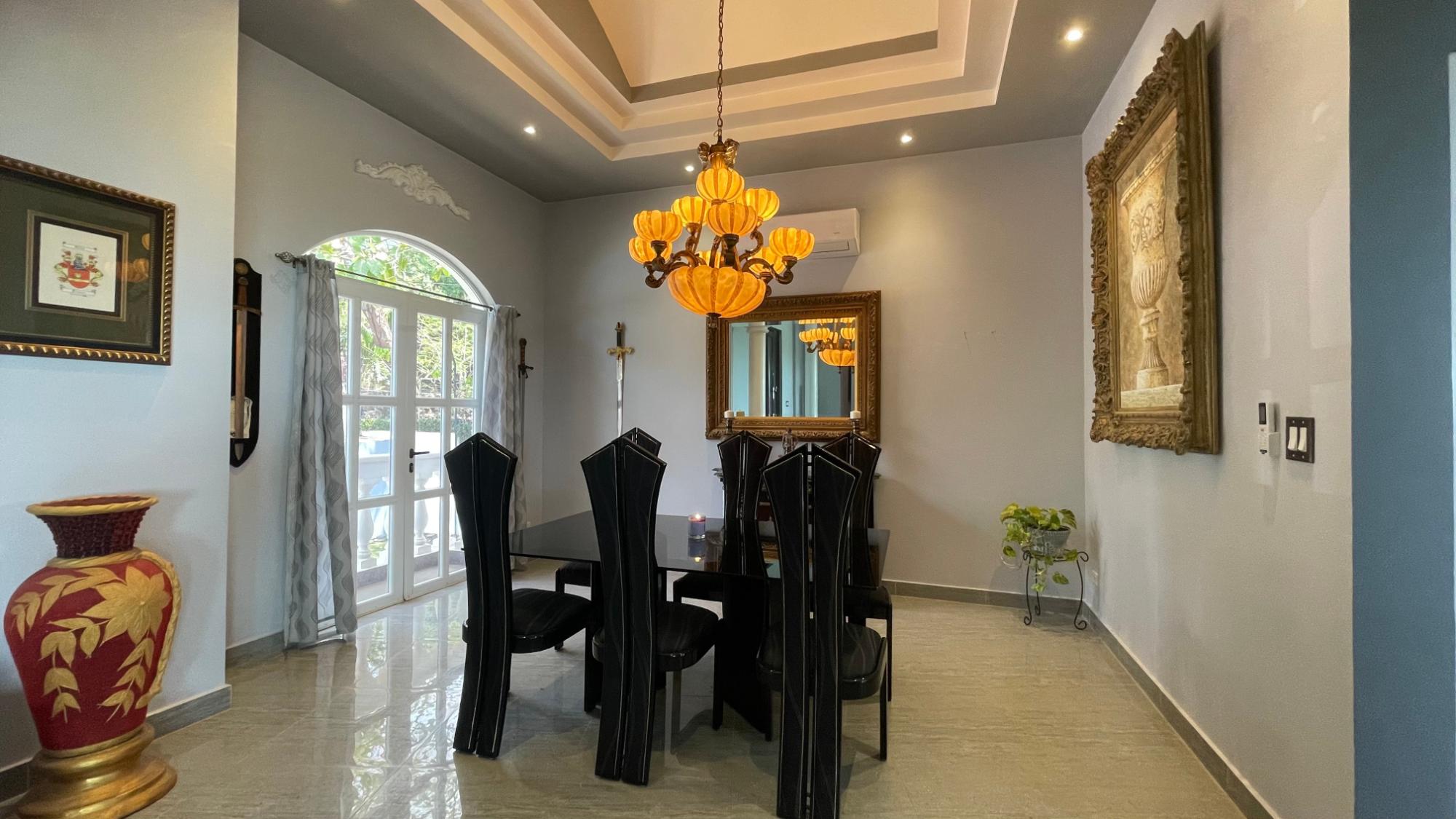 Se vende esta magnífica casa de dos niveles totalmente amoblada, con piscina y vista al mar, ubicada en Majagual, Panamá Oeste a 5 min de la playa. Esta propiedad cuenta con un área construido de 481.93 M2 con una superficie total de terreno de 2.500 M2. En la planta baja, la casa cuenta con un amplio estacionamiento para 3 vehículos, 1 depósito, 1 taller, terraza techada, baño de visita y área de lavandería techada. Además, se encuentra un apartamento completo para visitas con entrada independiente, que incluye una habitación completa con baño interno y walk-in closet, una pequeña sala-comedor, una cocina con estufa a gas independiente (119 M2). La planta alta presume de una fachada con estilo mediterráneo, una sala y comedor decorados con lámparas importadas desde Italia, una cocina completa con azulejos importados y una isla de preparación de alimentos con elevador de carga para subir las compras desde el estacionamiento. La recámara principal cuenta con baño interno completo, lavamanos individuales, ducha de hidromasaje, amplio walk-in closet y balcón con vista al mar. La recámara secundaria también tiene baño interno completo, decoración con diseño marinero, vista al jardín y closet completo. Un baño de visita y un balcón con vistas panorámicas a la naturaleza que rodea el Canal de Panamá y al mar completan este nivel. La casa se ha mejorado con una serie de características adicionales, como una escalera de servicio que comunica la planta baja con la cocina, una planta eléctrica a gas, 3 tanques de agua potable, 32 paneles solares, drenaje frontal, sistema de riego frontal para grama, tanque séptico, sistema de seguridad perimetral con cerca eléctrica, cámaras de seguridad y luces por sensor. Adicionalmente, la propiedad cuenta con un anexo de estacionamiento para 2 vehículos, una piscina con cascada y áreas verdes con vistas panorámicas.