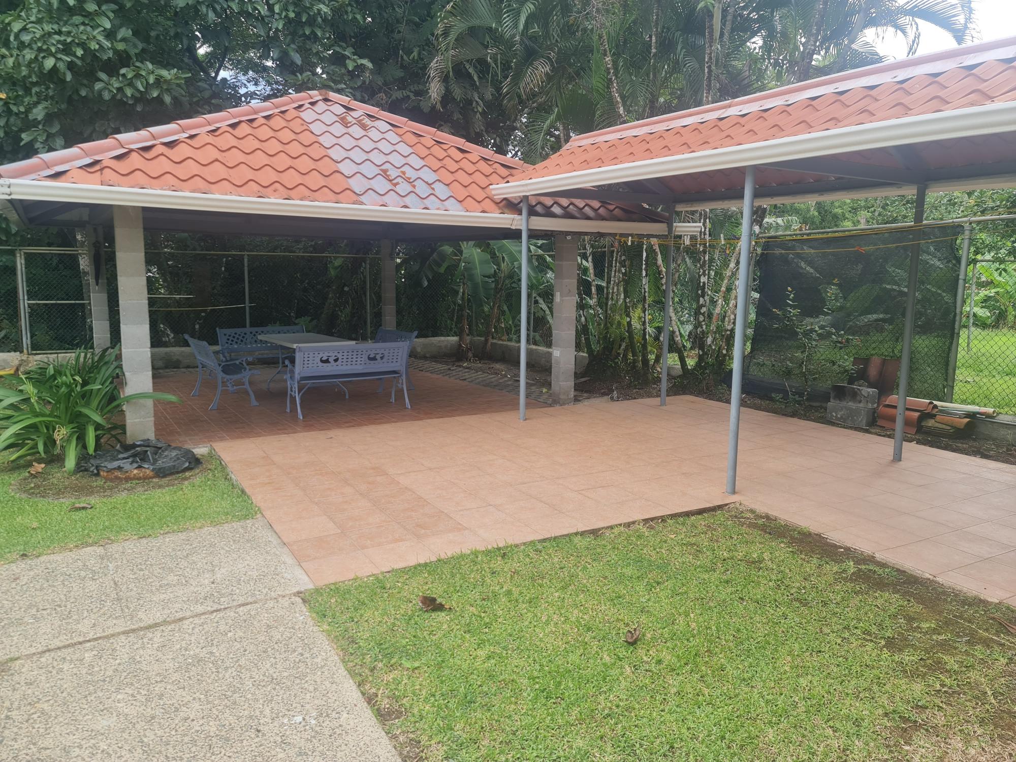La propiedad cuenta con planta baja y 2 pisos, la cual se distribuye de la siguiente manera: Primer piso: Sala, comedor, cocina, depósito, medio baño de visita, balcón frontal con puerta de vidrio corrediza con verjas de hierro. Segundo piso: 2 recámaras con closets, 1 baño completo, 1 closet en pasillo. Planta Baja: Gazebo en el patio posterior, estacionamiento abierto, lavandería techada, depósito, cuarto de empleada con 1 baño completo. También cuenta con un tanque de reserva de agua de 1100 litros con sistema de bomba, 2 tanques de gas de 100 galones y un calentador de agua y cerca perimetral de cemento y hierro.