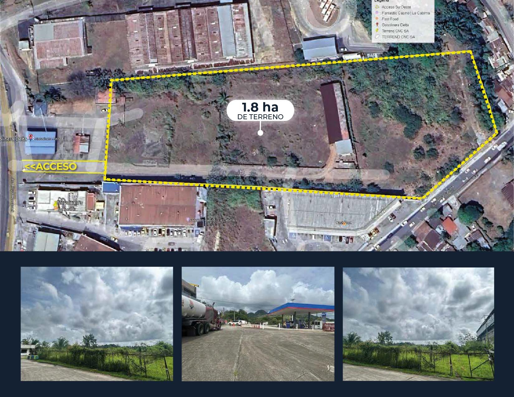 Terreno en venta en La Cabima con ubicación estratégica y alto potencial comercial. Justo al lado del McDonald’s y detrás de una estación de gasolina Delta, este terreno de 1.8 hectáreas cuenta con acceso directo desde la Vía Transístmica y la carretera principal de La Cabima, en una zona con una densidad poblacional de más de 250,000 habitantes. Es una oportunidad ideal para inversionistas y marcas que buscan presencia en un punto de alto tráfico y crecimiento. Rodeado de comercios consolidados, este lote es perfecto para desarrollar una plaza comercial, supermercado, centro médico, bodegas, franquicias o un proyecto mixto. Su conectividad, visibilidad y entorno lo convierten en una inversión segura y rentable. Si estás buscando un terreno que combine ubicación, flujo constante de personas y potencial de retorno, aquí está.